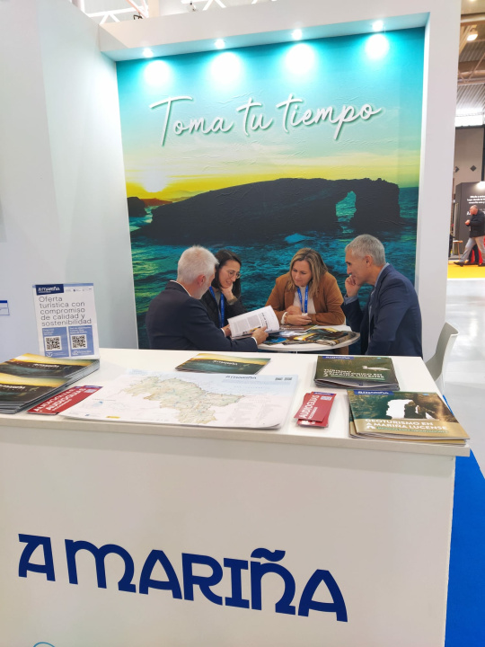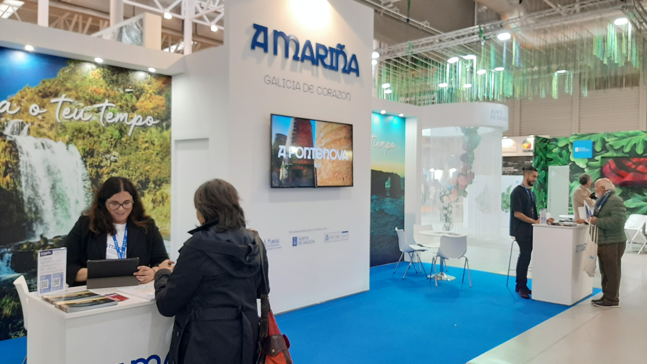 Dende o seu stand, o equipo da Mancomunidade recibiu visitantes e profesionais do sector, presentando os moitos atractivos dun territorio composto por 16 concellos que apostan por un modelo de turismo sostible e responsable.